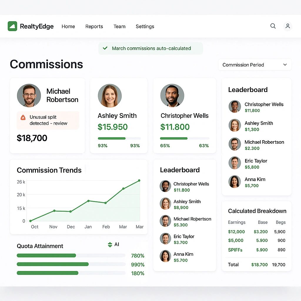 Stop losing days to Excel commission disputes with custom calculators that handle your complex rules, splits, and tiers automatically. AI can flag calculation anomalies, predict monthly payouts, and generate dispute-free statements. Sales reps check real-time earnings while managers see performance rankings instantly.