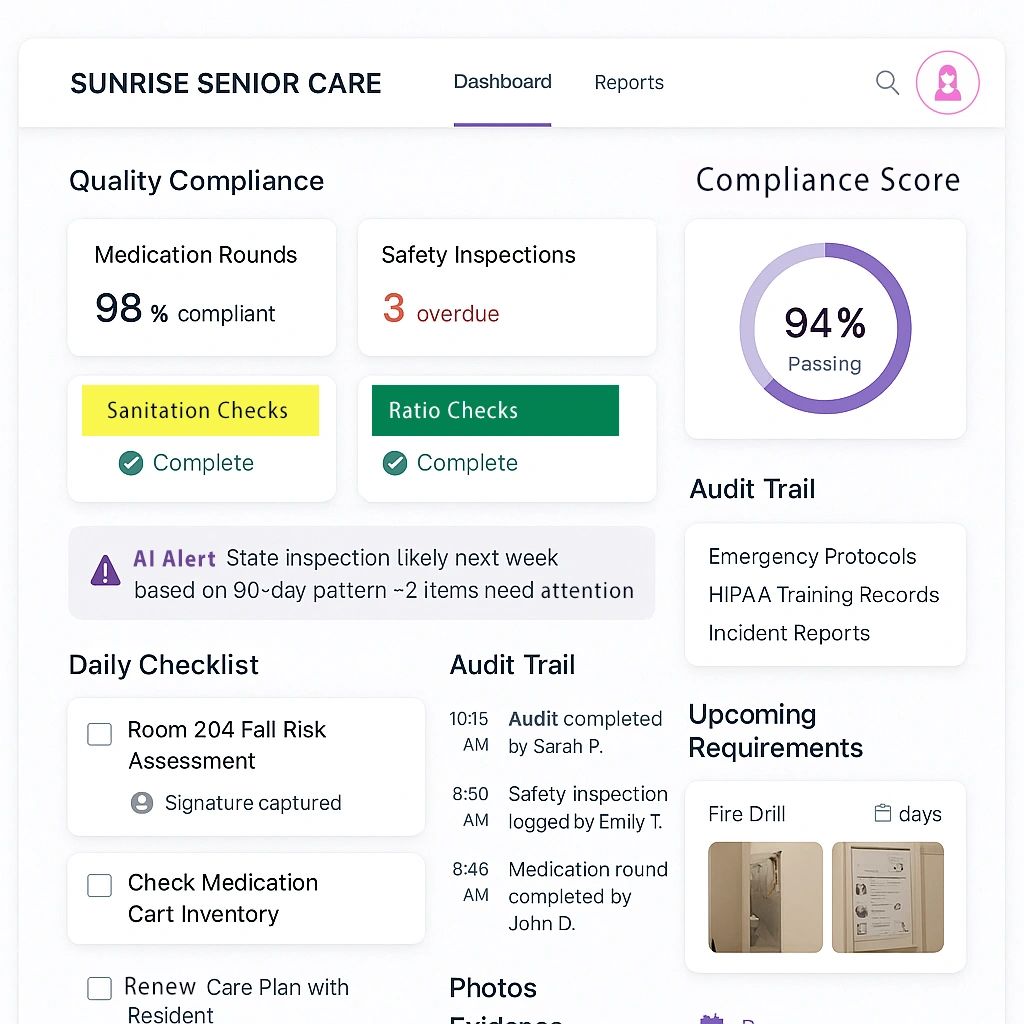 Transform paper checklists into digital audit trails that capture photos, timestamps, and signatures automatically. AI can detect compliance trends, predict inspection failures, and alert to missing documentation before audits. Generate reports instantly while building bulletproof records that protect you.
